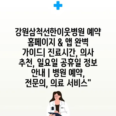 강원삼척선한이웃병원 예약 홈페이지 & 앱 완벽 설명서| 진료시간, 의사 추천, 일요일 공휴일 정보 공지 | 병원 예약, 전연락, 의료 서비스”에 대해 자주 묻는 질문 TOP 5