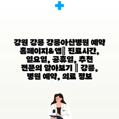 강원 강릉 강릉아산병원 예약 홈페이지&앱| 진료시간, 일요일, 공휴일, 추천 전문의 알아보기 | 강릉, 병원 예약, 의료 정보