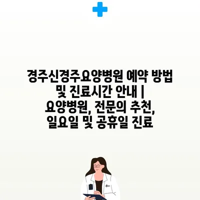 ✅ 경주신경주요양병원의 예약 방법과 진료 시간을 쉽게 알아보세요.