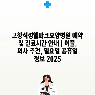 고창석정웰파크요양병원 예약 및 진료시간 공지 | 어플, 의사 추천, 일요일 공휴일 정보 2025