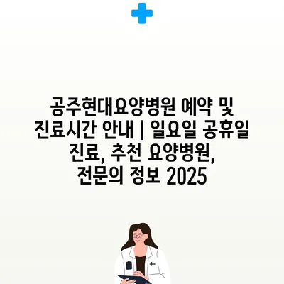 공주현대요양병원 예약 및 진료시간 공지|일요일 공휴일 진료, 추천 요양병원, 전연락 정보 2025