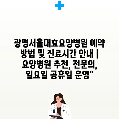 광명서울대효요양병원 예약 방법 및 진료시간 공지 | 요양병원 추천, 전연락, 일요일 공휴일 운영” 에 대해 자주 묻는 질문 TOP 5