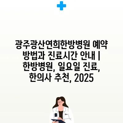 광주광산연희한방병원 예약 방법과 진료시간 공지 | 한방병원, 일요일 진료, 한의사 추천, 2025 에 대해 자주 묻는 질문 TOP 5