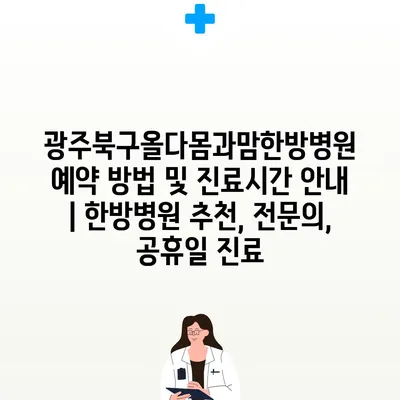 ✅ 광주북구올다몸과맘한방병원의 진료시간과 예약 방법을 지금 바로 알아보세요!