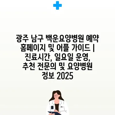 광주 남구 백운요양병원 예약 홈페이지 및 어플 설명서 | 진료시간, 일요일 운영, 추천 전연락 및 요양병원 정보 2025에 대해 알아보겠습니다.