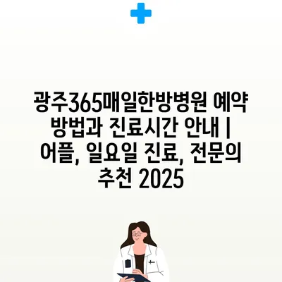 광주365매일한방병원 예약 방법과 진료시간 공지 | 어플, 일요일 진료, 전연락 추천 2025 에 대해 자주 묻는 질문 TOP 5