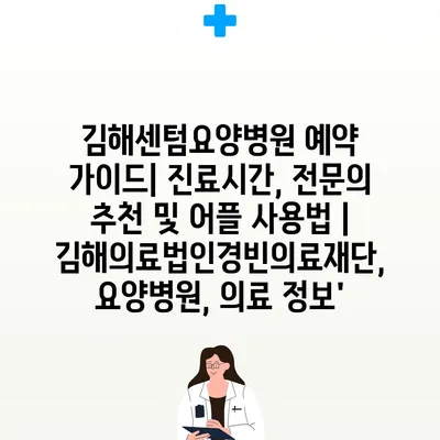 ✅ 김해센텀요양병원의 진료시간과 예약 방법을 알아보세요.
