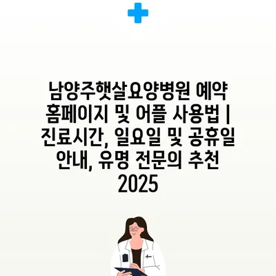 ✅ 남양주햇살요양병원의 예약 방법을 자세히 알아보세요.