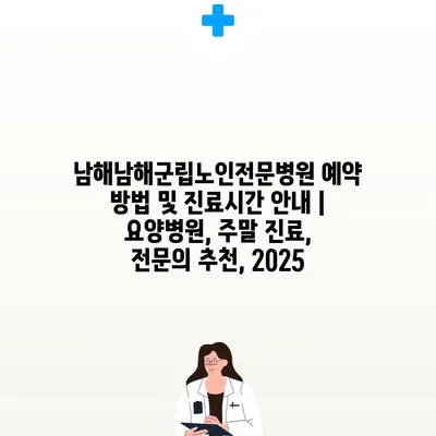 남해남해군립노인전문병원 예약 방법 및 진료시간 공지 | 요양병원, 주말 진료, 전연락 추천, 2025에 대해 자주 묻는 질문 TOP 5