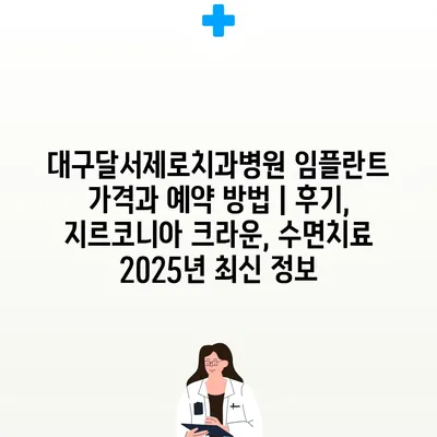 대구달서제로치과병원 임플란트 가격과 예약 방법 | 후기, 지르코니아 크라운, 수면치료 2025년 최신 정보에 대해 알아보겠습니다.