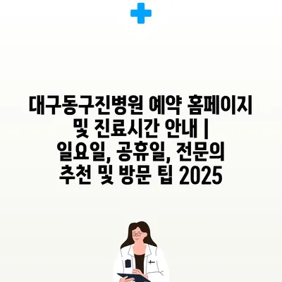 대구동구진병원 예약 홈페이지 및 진료시간 공지 | 일요일, 공휴일, 전연락 추천 및 방문 팁 2025