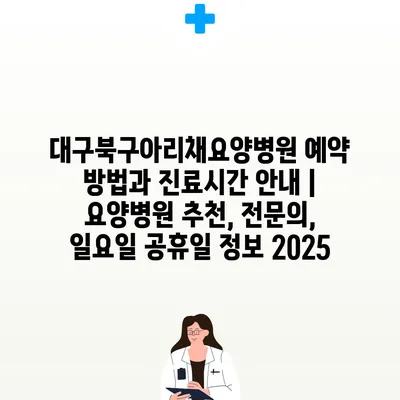 대구북구아리채요양병원 예약 방법과 진료시간 공지 | 요양병원 추천, 전연락, 일요일 공휴일 정보 2025 에 대해 자주 묻는 질문 TOP 5