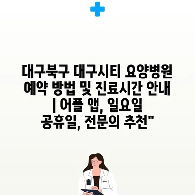✅ 대구시티 요양병원의 예약 방법을 자세히 알아보세요.