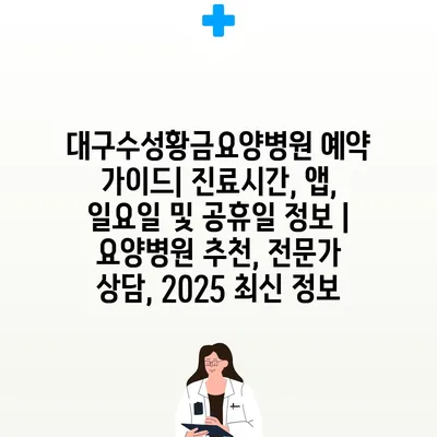 대구수성황금요양병원 예약 설명서| 진료시간, 앱, 일요일 및 공휴일 정보 | 요양병원 추천, 전문가 상담, 2025 최신 정보에 대한 글을 소개합니다.