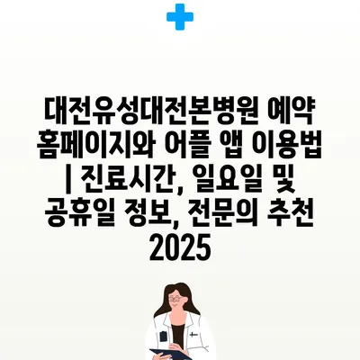 대전유성대전본병원 예약 홈페이지와 어플 앱 이용법 | 진료시간, 일요일 및 공휴일 정보, 전연락 추천 2025에 대해 알아보겠습니다.