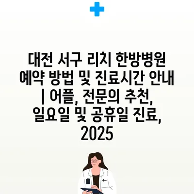 대전 서구 리치 한방병원 예약 방법 및 진료시간 안내 | 어플, 전문의 추천, 일요일 및 공휴일 진료, 2025