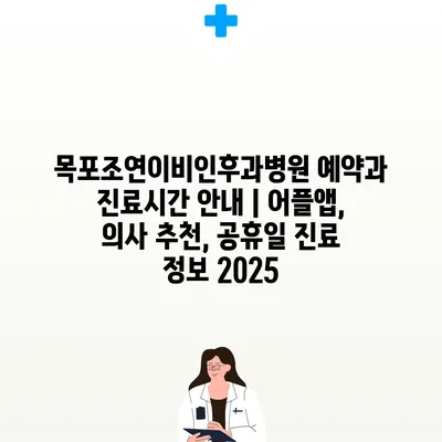 목포조연이비인후과병원 예약과 진료시간 안내 | 어플앱, 의사 추천, 공휴일 진료 정보 2025