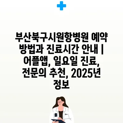 부산북구시원항병원 예약 방법과 진료시간 안내 | 어플앱, 일요일 진료, 전문의 추천, 2025년 정보