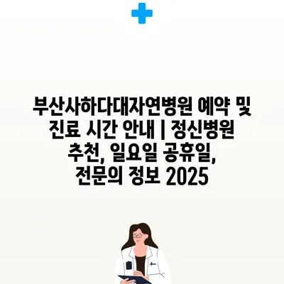 부산사하다대자연병원 예약 및 진료 시간 공지 | 정신병원 추천, 일요일 공휴일, 전연락 정보 2025 에 대해 자주 묻는 질문 TOP 5