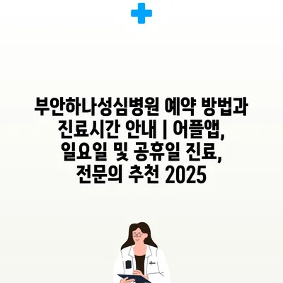 부안하나성심병원 예약 방법과 진료시간 안내 | 어플앱, 일요일 및 공휴일 진료, 전문의 추천 2025