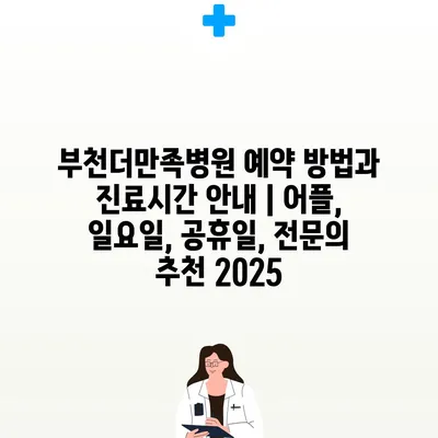 부천더만족병원 예약 방법과 진료시간 안내 | 어플, 일요일, 공휴일, 전문의 추천 2025