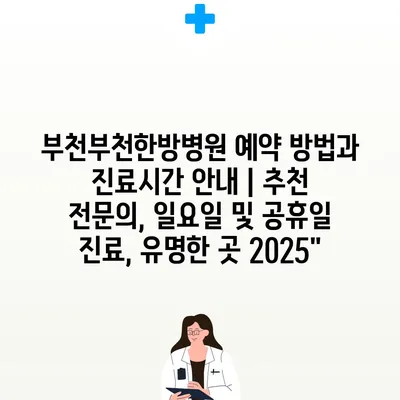 부천부천한방병원 예약 방법과 진료시간 공지 | 추천 전연락, 일요일 및 공휴일 진료, 유명한 곳 2025″ 에 대해 자주 묻는 질문 TOP 5