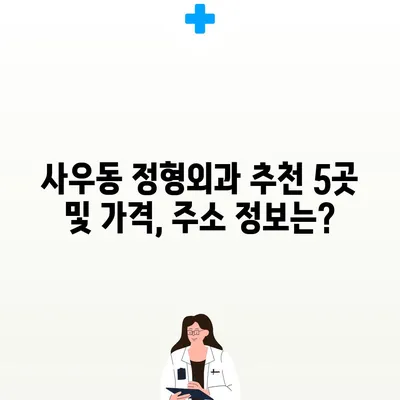 사우동에서 잘하는 정형외과를 찾는 것은 앞으로의 건강을 위해 중요한 선택입니다. 정형외과는 뼈와 관절, 근육, 인대 등에 발생하는 질병이나 손상을 진단하고 치료하는 전문 의료 분야입니다. 이 글에서는 사우동의 추천 정형외과에 대한 정보를 자세히 알아보겠습니다. 또한, 각 병원의 가격 및 비용, 주소 정보도 함께 제공하여 쉽게 선택할 수 있도록 돕겠습니다.