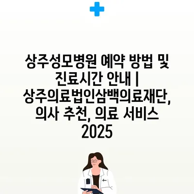상주성모병원 예약 방법 및 진료시간 안내 | 상주의료법인삼백의료재단, 의사 추천, 의료 서비스 2025
