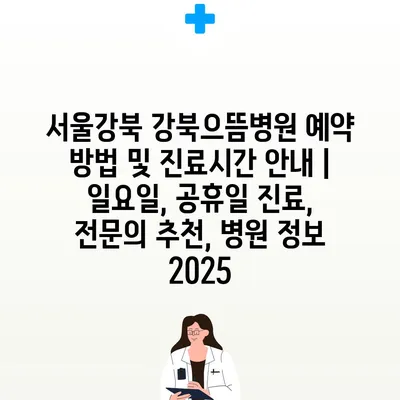 서울강북 강북으뜸병원 예약 방법 및 진료시간 안내 | 일요일, 공휴일 진료, 전문의 추천, 병원 정보 2025