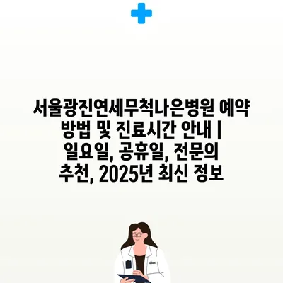 서울광진연세무척나은병원 예약 방법 및 진료시간 공지 | 일요일, 공휴일, 전연락 추천, 2025년 최신 정보에 대해 자주 묻는 질문 TOP 5