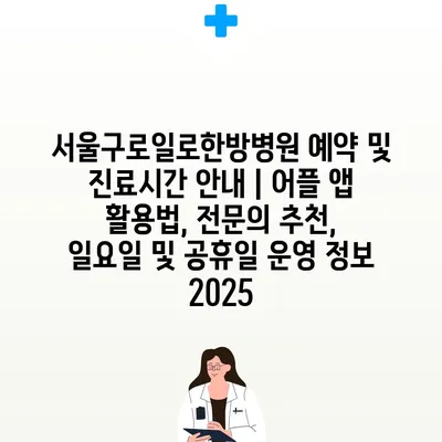 서울구로일로한방병원 예약 및 진료시간 안내 | 어플 앱 활용법, 전문의 추천, 일요일 및 공휴일 운영 정보 2025