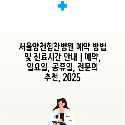 서울양천힘찬병원 예약 방법 및 진료시간 공지 | 예약, 일요일, 공휴일, 전연락 추천, 2025 에 대해 자주 묻는 질문 TOP 5