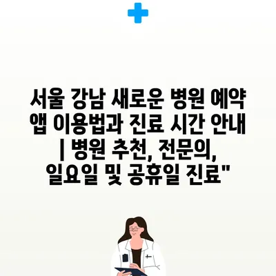 서울 강남 새로운 병원 예약 앱 이용법과 진료 시간 안내 | 병원 추천, 전문의, 일요일 및 공휴일 진료