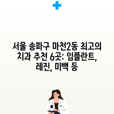 답변: 서울시 송파구 마천2동의 여러 치과에서 임플란트 치료를 제공합니다. 해당 블로그에서 추천한 치과들을 참고하세요.