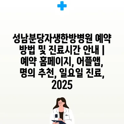 성남분당자생한방병원 예약 방법 및 진료시간 공지 | 예약 홈페이지, 어플앱, 명의 추천, 일요일 진료, 2025 에 대해 자주 묻는 질문 TOP 5