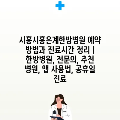 시흥시흥은계한방병원 예약 방법과 진료시간 정리 | 한방병원, 전연락, 추천 병원, 앱 사용법, 공휴일 진료 에 대해 자주 묻는 질문 TOP 5