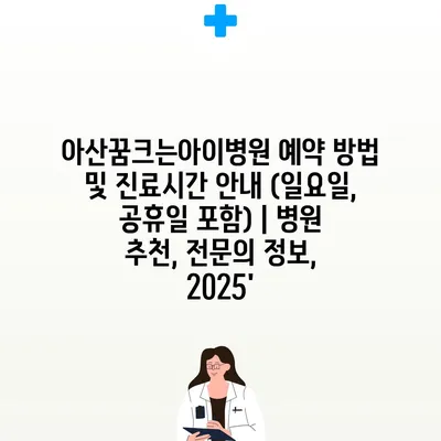 아산꿈크는아이병원 예약 방법진료시간 공지 (일요일, 공휴일 포함) | 병원 추천, 전연락 정보, 2025에서 자세히 알아보세요.