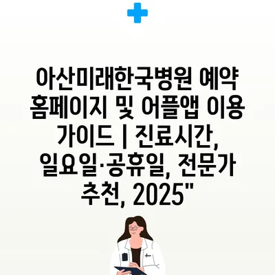 아산미래한국병원 예약 홈페이지 및 어플앱 이용 설명서 | 진료시간, 일요일·공휴일, 전문가 추천, 2025″에 대해 자주 묻는 질문 TOP 5