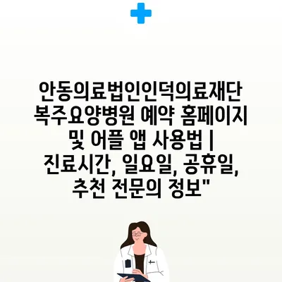 안동의료법인인덕의료재단 복주요양병원 예약 홈페이지 및 어플 앱 사용법 | 진료시간, 일요일, 공휴일, 추천 전연락 정보에 대해 자주 묻는 질문 TOP 5