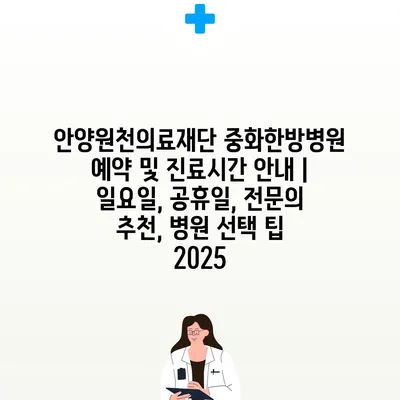 안양원천의료재단 중화한방병원 예약 및 진료시간 공지 | 일요일, 공휴일, 전연락 추천, 병원 선택 팁 2025 에 대해 자주 묻는 질문 TOP 5