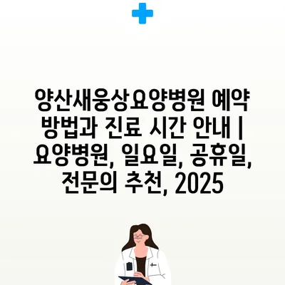 양산새웅상요양병원 예약 방법과 진료 시간 공지 | 요양병원, 일요일, 공휴일, 전연락 추천, 2025 에 대해 자주 묻는 질문 TOP 5