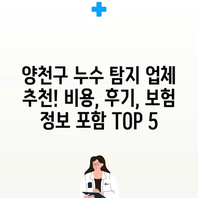 💡 양천구 누수 탐지 비용과 보험 혜택에 대해 알아보세요. 💡