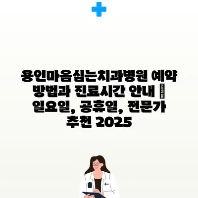 용인마음심는치과병원 예약 방법과 진료시간 안내 | 일요일, 공휴일, 전문가 추천 2025