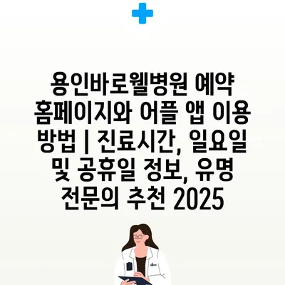 ✅ 용인바로웰병원 예약 방법과 진료시간을 한눈에 알아보세요!