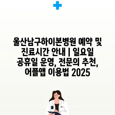 울산남구하이본병원 예약 및 진료시간 공지 | 일요일 공휴일 운영, 전연락 추천, 어플앱 이용법 2025