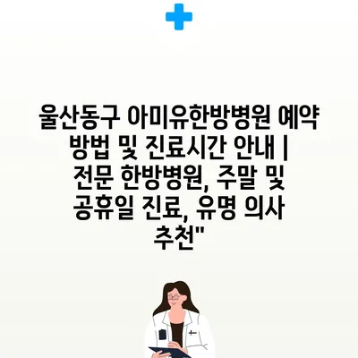 울산동구 아미유한방병원 예약 방법 및 진료시간 안내 | 전문 한방병원, 주말 및 공휴일 진료, 유명 의사 추천”