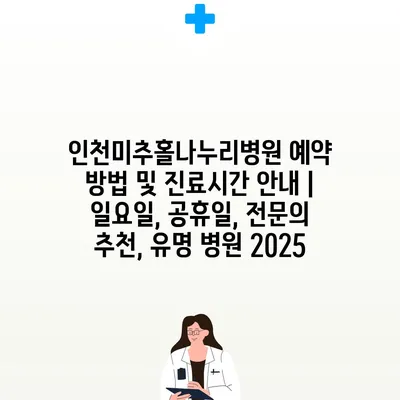 인천미추홀나누리병원 예약 방법 및 진료시간 공지 | 일요일, 공휴일, 전연락 추천, 유명 병원 2025에 대해 자주 묻는 질문 TOP 5
