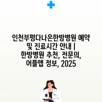 인천부평다나은한방병원 예약 및 진료시간 공지 | 한방병원 추천, 전연락, 어플앱 정보, 2025 에 대해 자주 묻는 질문 TOP 5