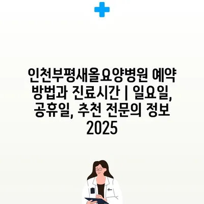 인천부평새올요양병원 예약 방법과 진료시간 | 일요일, 공휴일, 추천 전연락 정보 2025 에 대해 자주 묻는 질문 TOP 5