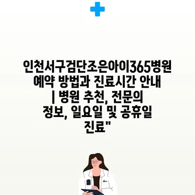 ✅ 인천서구검단조은아이365병원의 진료시간과 예약 방법을 지금 바로 알아보세요.